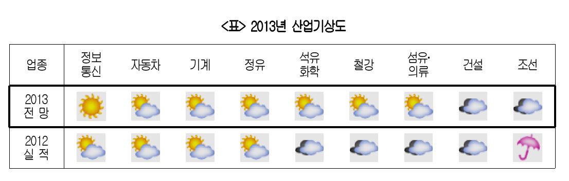 ÃÖ±Ù ´ëÇÑ»ó°øÈ¸ÀǼҰ¡ ¹ßÇ¥ÇÑ ¡®2013 »ê¾÷±â»óµµ Á¶»ç¡¯¿¡¼ Á¦¾à»ê¾÷ÀÌ ºüÁ³´Ù. »ê¾÷±â»óµµ Á¶»ç ÀÚ·á´Â ¸Å ºÐ±âº°·Î ½ÃÇà.2013-01-08 12:22:31