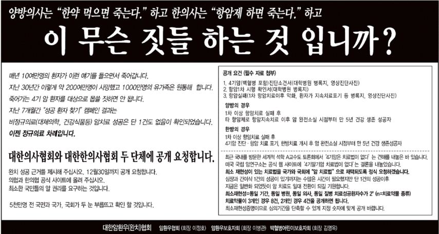 ¾ÏȯÀÚ´Üü, À̹ø¿£ Àǻ硤ÇÑÀÇ»ç µ¿½Ã ºñÆÇ