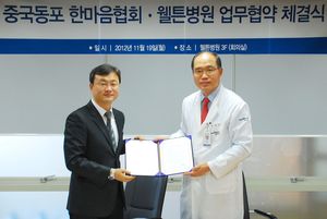 À£Æ°º´¿ø(¿øÀå ¼Û»óÈ£)Àº ÃÖ±Ù Áß±¹µ¿Æ÷ ÇѸ¶À½Çùȸ(ȸÀå À̸²ºó)¿Í »óÈ£ ±³·ù Çù·Â ¹× ÀǷἺñ½º Áö¿øÀ» À§ÇÑ ¾÷¹«Çù¾àÀ» 2012-11-21 11:02:32