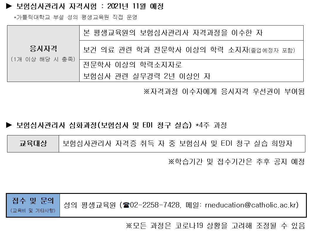 ¼ºÀÇ Æò»ý±³À°¿ø, º¸Çè½É»ç°ü¸®»ç ÀڰݽÃÇè ´ëºñ ¿î¿µ