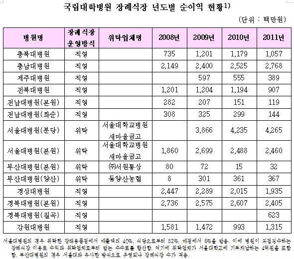 Áö³ÇØ À§Å¹¿î¿µ Àå·Ê½ÄÀåÀ¸·Î ºÐ´ç¼¿ï´ëº´¿øÀÌ 42¾ï6500¸¸¿ø, ¼¿ï´ëº´¿øÀÌ 24¾ï6000¸¸¿øÀ» ¹ú¾îµéÀÎ °ÍÀ¸·Î ³ªÅ¸³µ´Ù. ¹«.2012-10-23 09:56:16