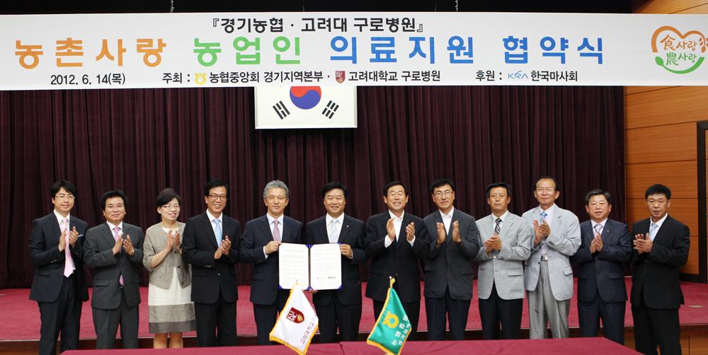 °í·Á´ëÇб³ ±¸·Îº´¿ø(¿øÀå ±è¿ì°æ)ÀÌ ³óÇùÁß¾Óȸ °æ±âÁö¿ªº»ºÎ(º»ºÎÀå Á¤¿¬È£)¿Í ¼ÕÀâ°í ³óÃÌ»ç¶û ³ó¾÷ÀÎ ÀÇ·áÁö¿ø¿¡ ³ª¼±´Ù2012-06-17 12:11:24