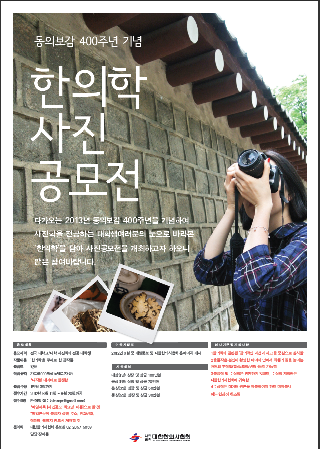 ´ëÇÑÇÑÀÇ»çÇùȸ(ȸÀå ±èÁ¤°ï)°¡ µ¿ÀǺ¸°¨ ¹ß°£ 400ÁÖ³â(2013³â)À» ±â³äÇÏ´Â ¡®ÇÑÀÇÇÐ »çÁø °ø¸ðÀü¡¯À» °³ÃÖÇÑ´Ù. ÇÑÀÇ.2012-06-11 18:06:16