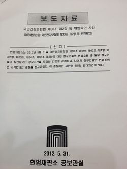 Çå¹ýÀçÆÇ¼Ò´Â 31ÀÏ Á÷Àå°¡ÀÔÀÚ¿Í Áö¿ª°¡ÀÔÀÚ·Î ³ª´¶ ±¹¹Î°Ç°º¸Çè ÀçÁ¤À» ÅëÇÕÇÑ °ÍÀº À§ÇåÀÌ ¾Æ´Ï¶ó°í °áÁ¤Çß´Ù. ÇåÀç´Â ÆÇ°á.2012-05-31 15:15:49
