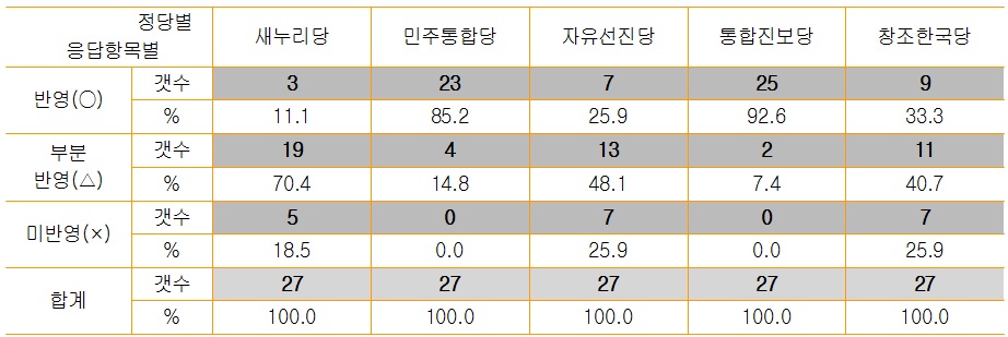 ¡ã27°³ Æò°¡±âÁØ¿¡ ´ëÇÑ Á¤´çº° Æò°¡ ºÐÆ÷ º¹ÁöÁ¤Ã¥ °ø¾à¿¡ ÀÖ¾î »õ´©¸®´çÀº Á¤Ã¥ ¹Ý¿µµµ°¡ ¹ÌÈíÇÑ ¹Ý¸é ¹ÎÁÖÅëÇÕ´çÀº ´ë2012-04-06 11:41:49
