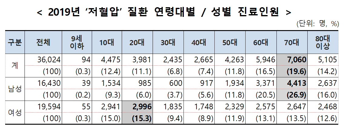 ÀúÇ÷¾Ð ¹ß»ý ÃÖ´Ù ¿¬·É, ³²¼º 70´ë¡¤¿©¼º 20´ë