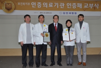 °Ç¾çÀÇ´ë ±è¾È°úº´¿ø(¿øÀå ¼Õ¿ëÈ£)ÀÌ º¸°Çº¹ÁöºÎ(Àå°ü ÀÓä¹Î)·ÎºÎÅÍ ¡®ÀÇ·á±â°ü ÀÎÁõ¡¯À» ȹµæ,ÃÖ±Ù ÀÎÁõÆÐ ±³ºÎ½ÄÀ» °³ÃÖÇß´Ù.2011-12-21 02:18:06