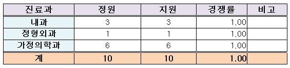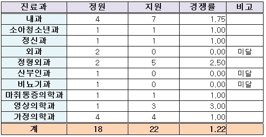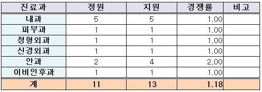 ¡ØÁ¤¿ø¿Ü ¸ðÁý °¡´É Áø·á°ú : ÈäºÎ¿Ü°ú(1¸í), ÀÀ±ÞÀÇÇаú(1¸í), ¿¹¹æÀÇÇаú(1¸í) ¹ÌÆ÷ÇÔ2011-11-30 07:44:13