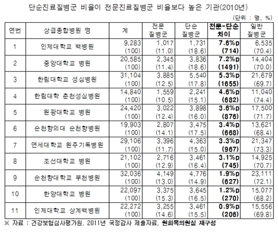 °íµµÀÇ ÀÇ·á±â¼úÀ» ¿ä±¸ÇÏ´Â Àü¹®Áø·áº¸´Ù °¨±â µî ´Ü¼øÁø·á¿¡ Ä¡ÁßÇÏ´Â »ó±ÞÁ¾ÇÕº´¿øÀÌ 11°÷À̳ª µÇ´Â °ÍÀ¸·Î ³ªÅ¸³µ´Ù.27ÀÏ ±¹2011-09-28 02:45:41