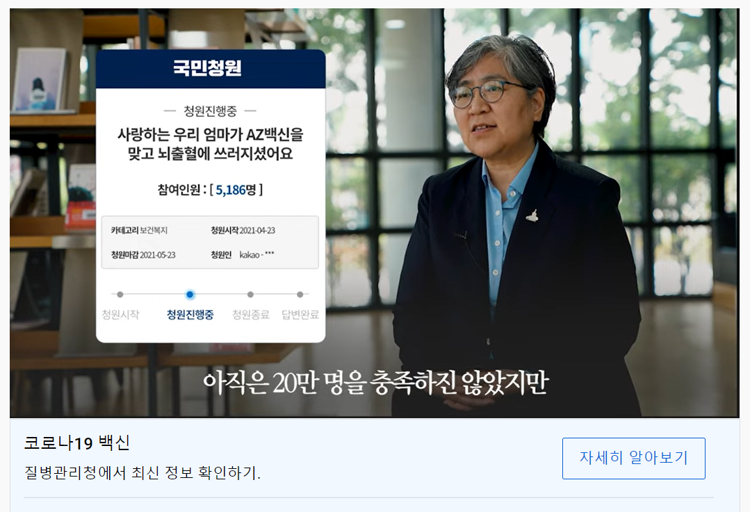 [µ¥Àϸ®¸Þµð ½ÅÁöÈ£ ±âÀÚ] û¿ø °Ô½Ã ÇÑ´ÞÀÌ ¾ÈµÆ°í ´äº¯ ¿ä°Ç 20¸¸¸í µ¿Àǰ¡ ¾ÈµÆÀ½¿¡µµ Äڷγª19 ¹é½Å Á¢Á¾ ºÒ¾È ÇØ¼Ò¸¦ À§ÇØ2021-05-18 20:48:20