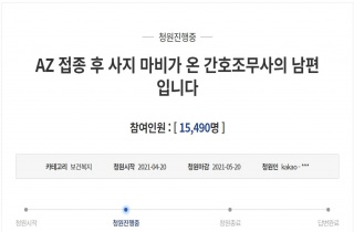 [µ¥Àϸ®¸Þµð ¹Ú¹Î½Ä ±âÀÚ] ¾Æ½ºÆ®¶óÁ¦³×Ä«(AZ) ¹é½ÅÀ» ¸ÂÀº ÈÄ »çÁö°¡ ¸¶ºñµÈ °£È£Á¶¹«»çÀÇ ³²ÆíÀÌ Á¤ºÎ¸¦ ºñÆÇÇϴ û¿Í´ë ±¹.2021-04-21 05:16:03