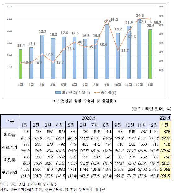 ¿Ã 1¿ù º¸°Ç»ê¾÷ ¼öÃâ, Àü³â µ¿¿ù´ëºñ 66.7% ¡è