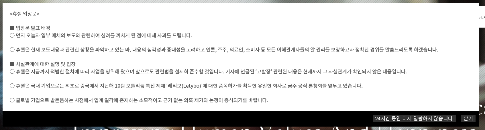 [µ¥Àϸ®¸Þµð ½ÅÁöÈ£ ±âÀÚ] ±¹³» º¸Åø¸®´® Åå½Å(º¸Å彺) 1À§ ±â¾÷ ÈÞÁ©ÀÌ ±¹°¡ÃâÇϽÂÀÎÀ» ¹ÞÁö ¾ÊÀº Á¦Ç°À» Áß±¹¿¡ ¼öÃâÇß´Ù´Â 2021-02-04 05:50:15