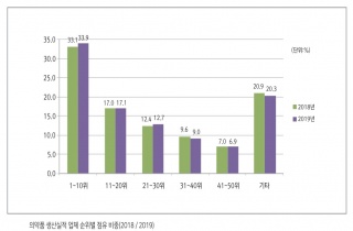 [µ¥Àϸ®¸Þµð ¾çº¸Çý ±âÀÚ] Áö³ 2019³â ÀǾàǰ »ý»ê±Ô¸ð 5000¾ï ÀÌ»ó Á¦¾à»ç°¡ 7°³¿¡¼ 5°³·Î ÁÙ¾ú´Ù. À̵éÀÇ ½ÃÀå Á¡À¯À²µµ 26%2021-01-22 06:02:55