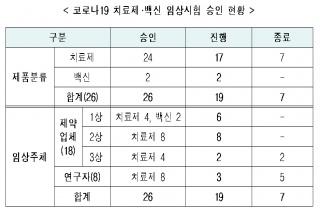 ±¹³» Äڷγª19 Ä¡·áÁ¦¡¤¹é½Å ÀÓ»ó 26°Ç ½ÂÀΡ¤¡¤¡¤¾à(å·) 7°Ç Á¾·á