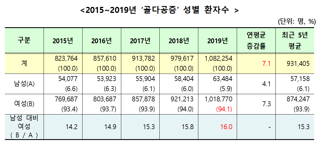 [µ¥Àϸ®¸Þµð ÇÑÇØÁø ±âÀÚ] ÃÖ±Ù 5³â°£ ¹ß»ýÇÑ °ñ´Ù°øÁõ ȯÀÚ °¡¿îµ¥ ¿©¼º ȯÀÚ ºñÀ²ÀÌ 94%·Î ¸Å¿ì ³ô°Ô ³ªÅ¸³µ´Ù. ±¹¹Î°Ç°º¸.2020-10-25 19:25:07