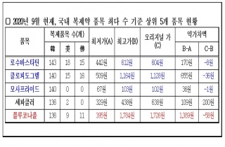[µ¥Àϸ®¸Þµð ¾çº¸Çý ±âÀÚ] ±¹³» ¸ÅÃâ »óÀ§ 5°³ º¹Á¦¾à(Á¦³×¸¯) ǰ¸ñ ¼ö°¡ ´Ù¸¥ ³ª¶ó¿¡ ºñÇØ 10¹è ÀÌ»ó ¸¹°í, ¿À¸®Áö³Î ÀǾàǰº¸.2020-10-13 15:27:01