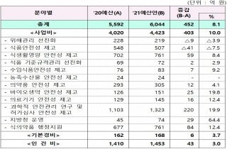 ½Ä¾àó, 2021³âµµ ¿¹»ê 6044¾ï Æí¼º¡¤¡¤¡¤Àü³âºñ 8.1% Áõ°¡