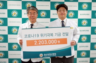 [µ¥Àϸ®¸Þµð ¹ÚÁ¤¿¬ ±âÀÚ] ¿ï»ê ³²±¸¿¡ À§Ä¡ÇÑ ´º¿å¿¬ÇÕÄ¡°ú°¡ ¿ï»ê´ëÇб³º´¿ø¿¡ Äڷγª19 ±Øº¹ À§ÇÑ ¼º±Ý 220¸¸3000¿øÀ» Àü´Þ.2020-05-08 16:46:02