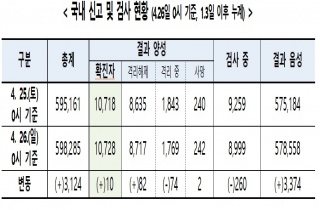 [µ¥Àϸ®¸Þµð ¾çº¸Çý ±âÀÚ] ±¹³» Äڷγª19 ½Å±Ô È®ÁøÀÚ°¡ ¾îÁ¦¿¡ ÀÌ¾î ¿À´Ãµµ 10¸íÀ» ±â·ÏÇß´Ù. »ç¸ÁÀÚ´Â 2¸íÀÌ ´Ã¾ú´Ù. Áúº´2020-04-26 10:20:30