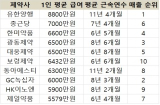 [µ¥Àϸ®¸Þµð ¾çº¸Çý ±âÀÚ] Áö³ÇØ Á÷¿ø 1ÀÎ Æò±Õ ±Þ¿©(±Þ¿© ÃѾ×/ÀçÁ÷ Àοø ¼ö)°¡ °¡Àå ¸¹Àº Á¦¾à»ç´Â 'À¯ÇѾçÇà'À̾ú´Ù. ±×»Ó .2020-04-06 05:29:30