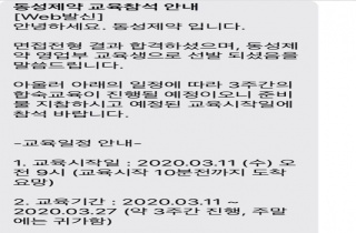 µ¿¼ºÁ¦¾à, ½ÅÀÔ»ç¿ø ±³À°»ý 'Ãë¾÷ °©Áú' ³í¶õ